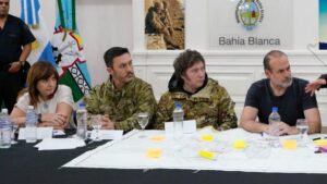 Milei arribó a Bahía Blanca para tomar contacto con autoridades tras el temporal del viernes