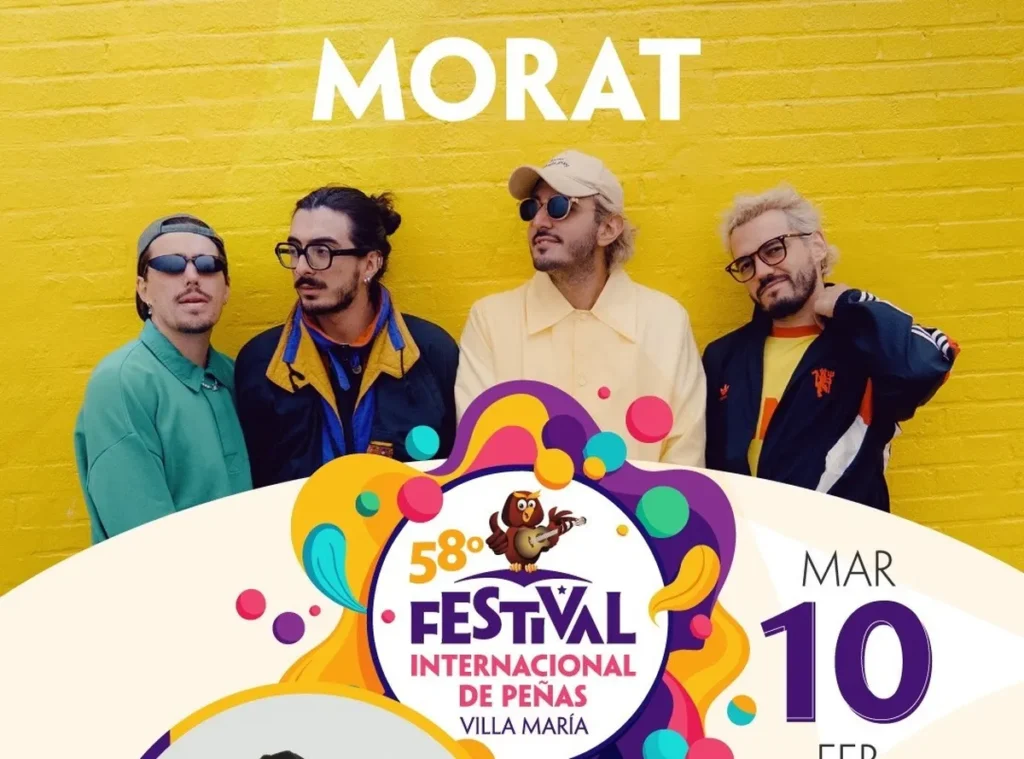 El martes 10 de febrero de 2026, la banda colombiana Morat marcará un hito al presentarse por primera vez en el Anfiteatro Municipal de Villa María, donde será la encargada de cerrar la 58ª edición del Festival Internacional de Peñas.